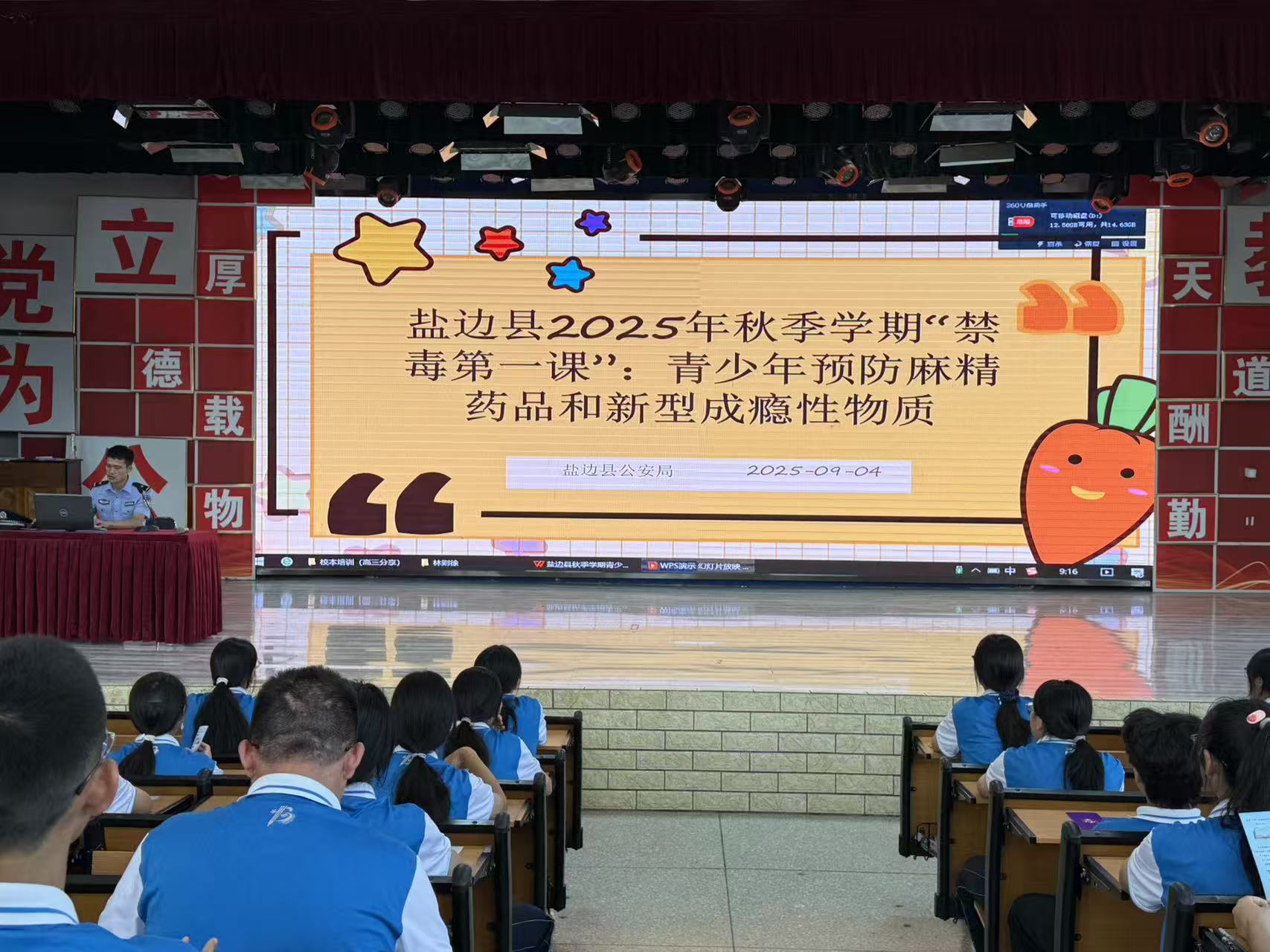 为进一步加强青少年毒品预防教育工作,切实增强学生识毒、防毒、拒毒意识和能力,盐边县公安局民警走进我校,为学生们带来了一堂意义非凡的“禁毒第一课”,此次课程聚焦青少年预防麻精药品和新型成瘾性物质,全力守护青少年的健康成长。