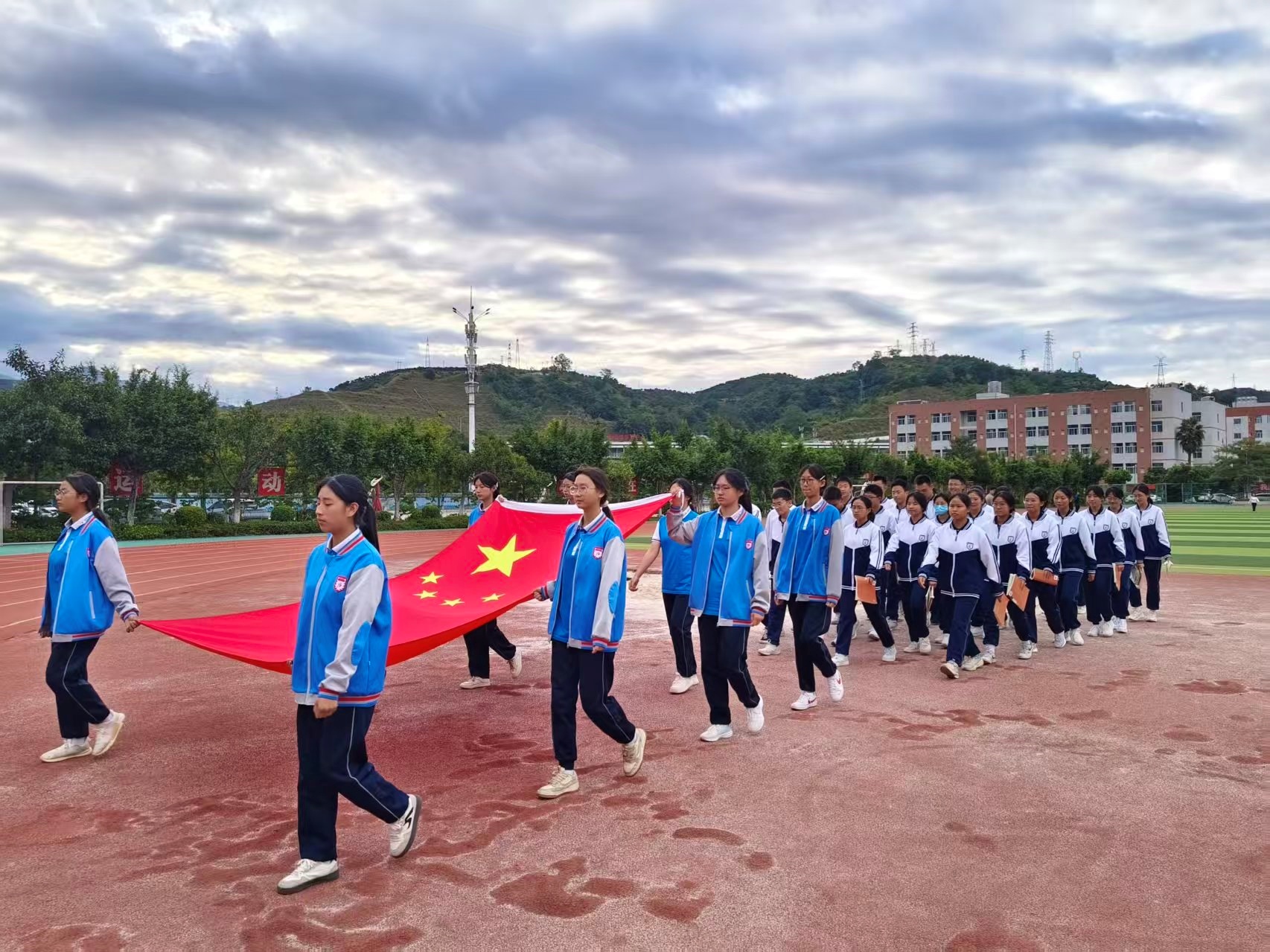 2025年10月27日,盐边县中学校举行升旗仪式,本次仪式由学校国旗班担任升旗任务,高一 2 班全体同学负责护旗工作。高一2班30名学子朝气蓬勃,怀揣梦想参与护旗。