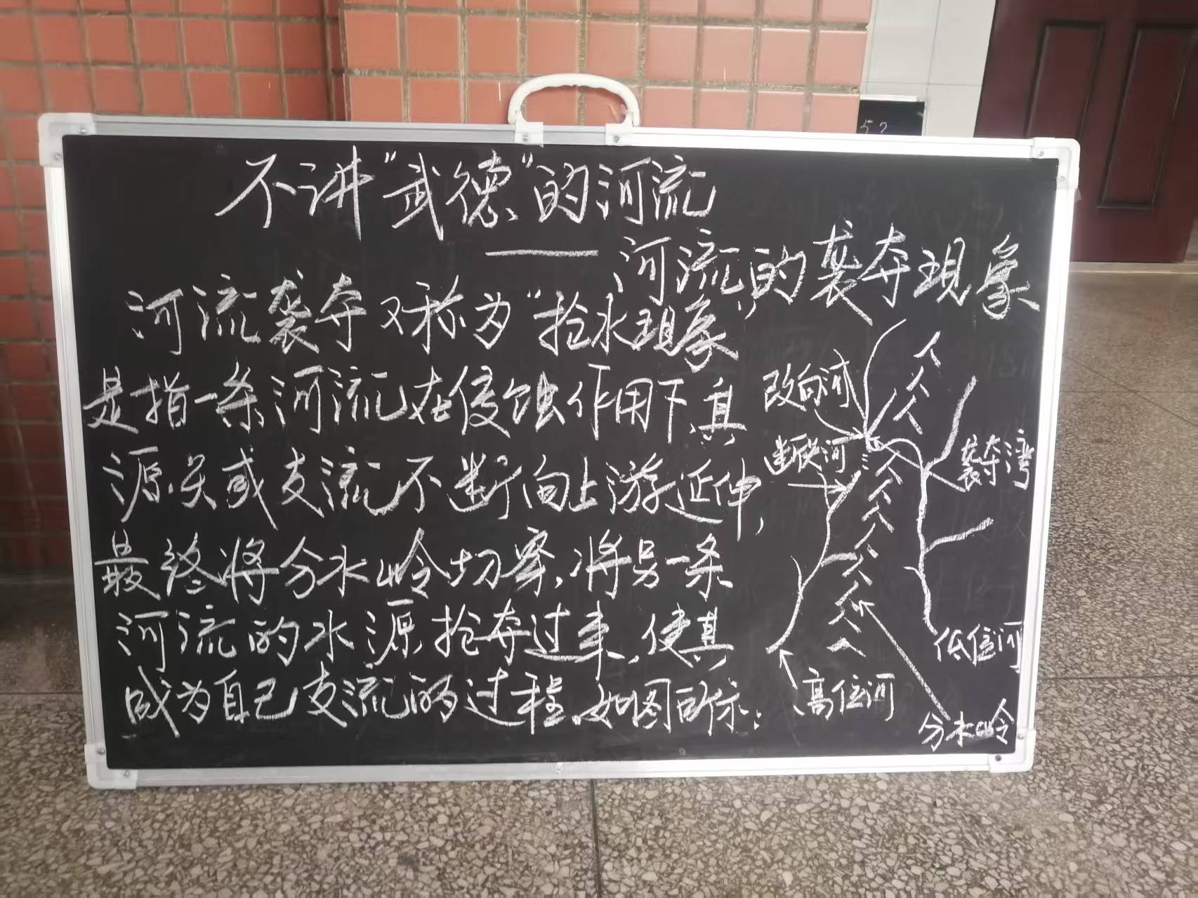 除此之外,高二地理组利用小黑板,由李宗远老师将生活中的地理现象通过板书板画形式呈现,向学生传达“生活处处是地理”的理念,引导学生关注身边的地理现象,热爱生活。