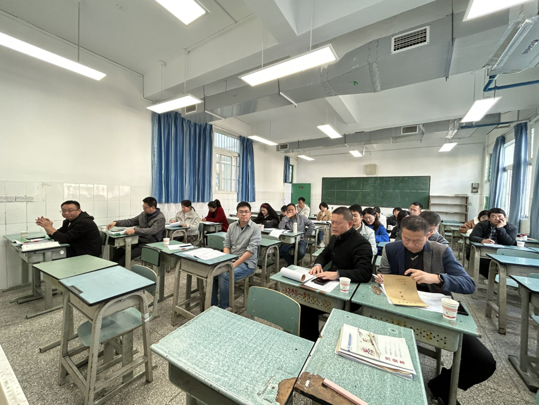 活动分三个环节有序开展:首先,盐边七中分校姬珂老师以《圆锥曲线中求解离心率的值与范围问题》为题进行专题讲解,凭借扎实的专业功底,将复杂知识点拆解分析,结合实例化繁为简,为在场师生呈现了一堂高效实用的示范课;随后,盐边县中学校高 2027 届数学教研组长黄长秀老师带来《圆锥曲线高考题中点差法探究——设而不求思想的应用》微讲座,立足高考真题,深入剖析解题思路与数学思想,为一线教学提供了宝贵参考;最后,评课交流环节气氛热烈,黄尔林书记强调,高中教师要潜心钻研教学,以专业能力赢得学生认可,不负教育使命,并对两位老师的分享给予充分肯定;胡晓老师结合自身教学经验,提出针对性见解,引发在场教师共鸣。