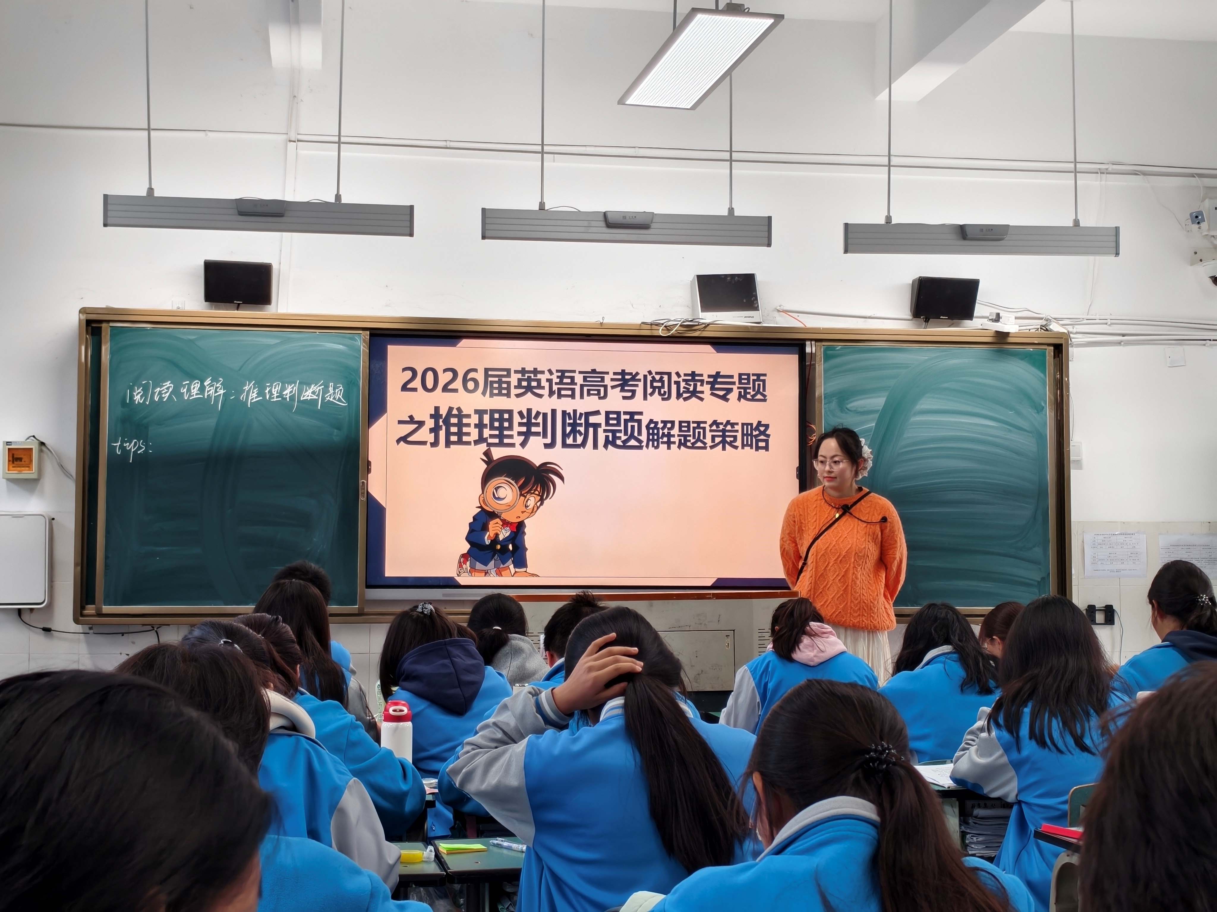 2025年12月3日下午第一节,高三英语组黄贵娇老师在高三17班讲了题为《2026届英语高考阅读理解专题之推理判断解题策略》的公开课,全组老师到场听了课。