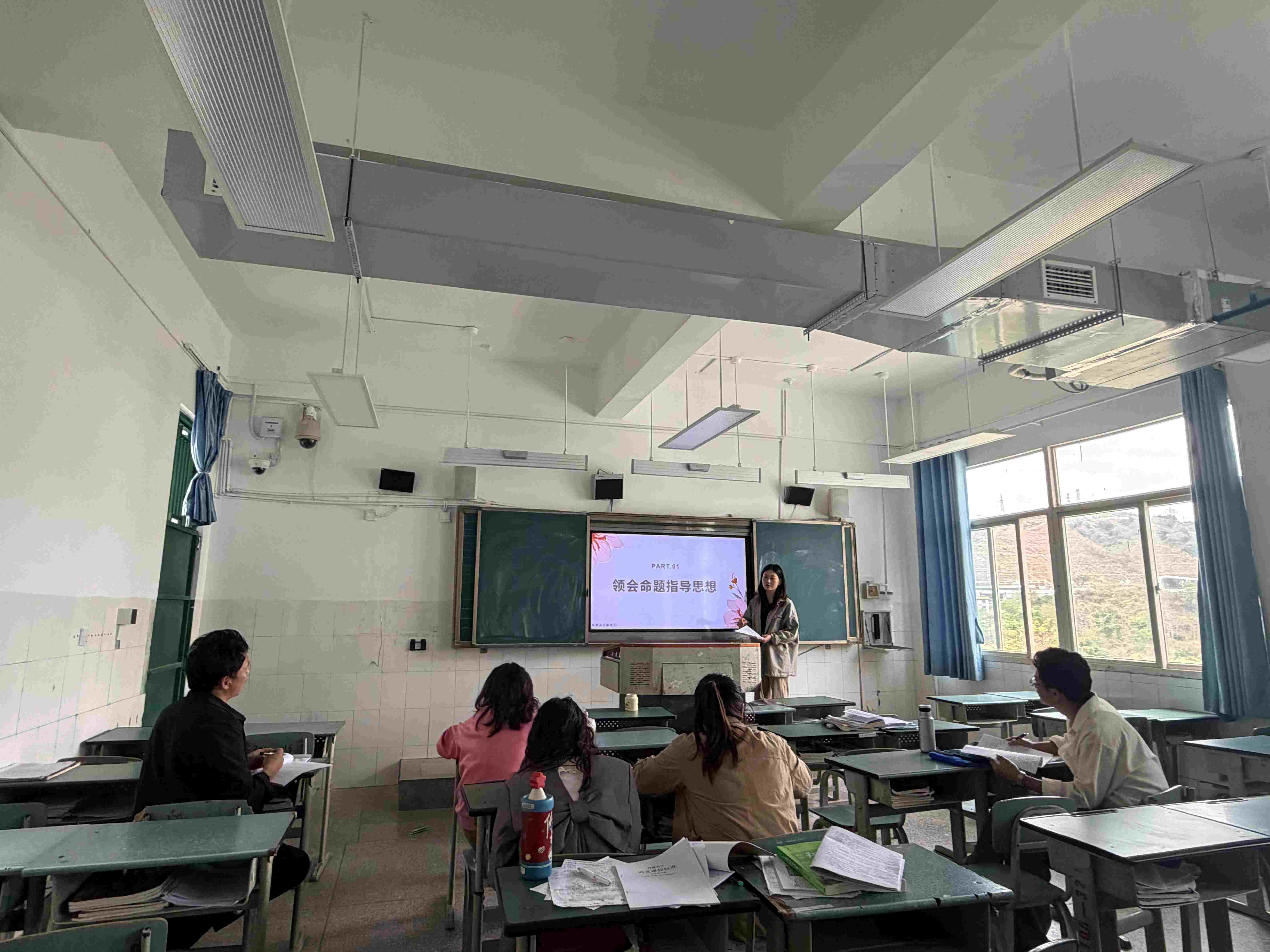 随后,张明诗老师做专题学习心得分享。她深入剖析了新高考语文命题呈现的三大核心趋势:情境性、思辨性与综合性,强调一线教师要及时转变教学理念、升级备考策略;指出教师需潜心研读《普通高中语文课程标准》及《高考评价体系》等权威资料,精准把握新高考命题导向;同时着重强调了教材在高考复习中的核心地位与重要作用,并结合教学实际,分享了多项切实可行、高效落地的高考备考策略。