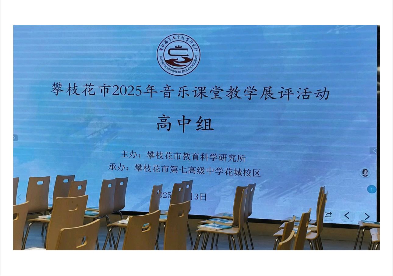 2025年06月03日,在攀枝花市第七高级中学花城校区开展了攀枝花市2025年音乐课堂教学展评活动(高中组),我校沈香老师带来了一堂精彩纷呈的《汉族民歌》公开课。课堂以趣味十足的“纸飞机落点”游戏导入,巧妙串联地域民歌元素,自然引出教学主题,瞬间点燃学生探索热情。