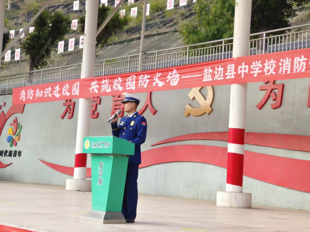 接着,盐边县消防救援大队马明宇同志开展消防知识安全宣讲。他结合全国真实消防案例,深入浅出地为师生普及消防常识,详细讲解火灾预防、应急避险、逃生自救等实用技能,引导大家提高安全警惕,学会规避危险,切实守护自身生命财产安全。