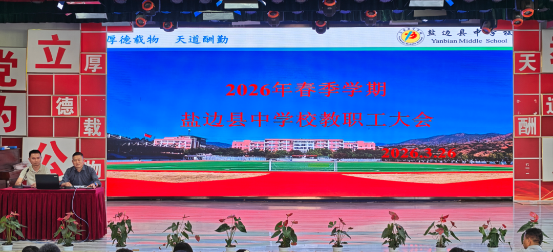 2026年3月26日,盐边县中学校召开全体教职工大会。会议着重对校园安全、教育教学、行风建设等重点工作进行安排部署,组织开展专题培训与教师学习分享。